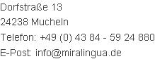 Das Copyright für veröffentlichte, von Miralingua erstellte Objekte bleibt allein bei Miralingua. Eine Vervielfältigung oder Verwendung solcher Texte in anderen elektronischen oder gedruckten Publikationen ist ohne ausdrückliche Zustimmung von Miralingua nicht gestattet.